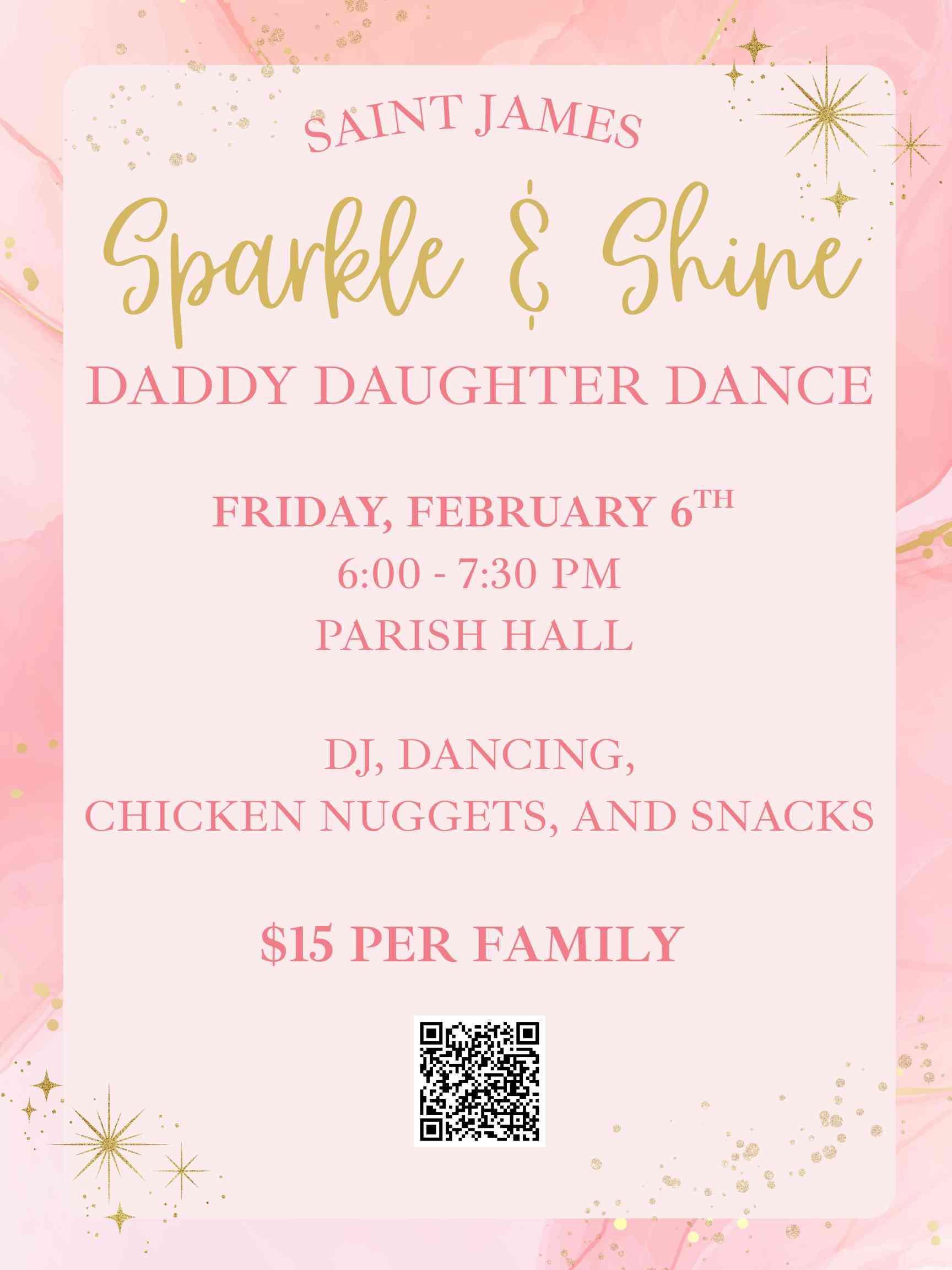 All dads and daughters are cordially invited to our Sparkle and Shine Daddy Daughter Dance on Friday, February 6th from 6:00 – 7:30 pm in the Parish Hall.
